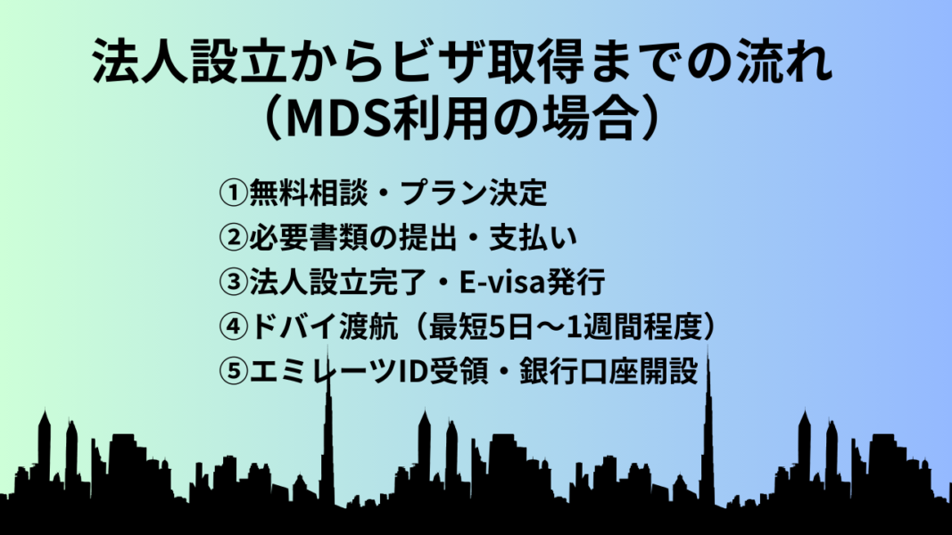 法人設立からビザ取得までの流れ(MDS利用の場合)