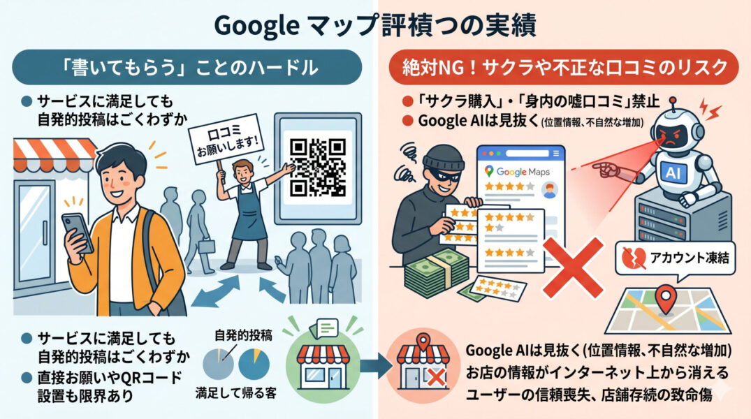 口コミの重要性はわかっていても、実際に集めるのは非常に困難です。店舗側が直面するリアルな壁と、絶対にやってはいけない注意点を見ていきましょう。
